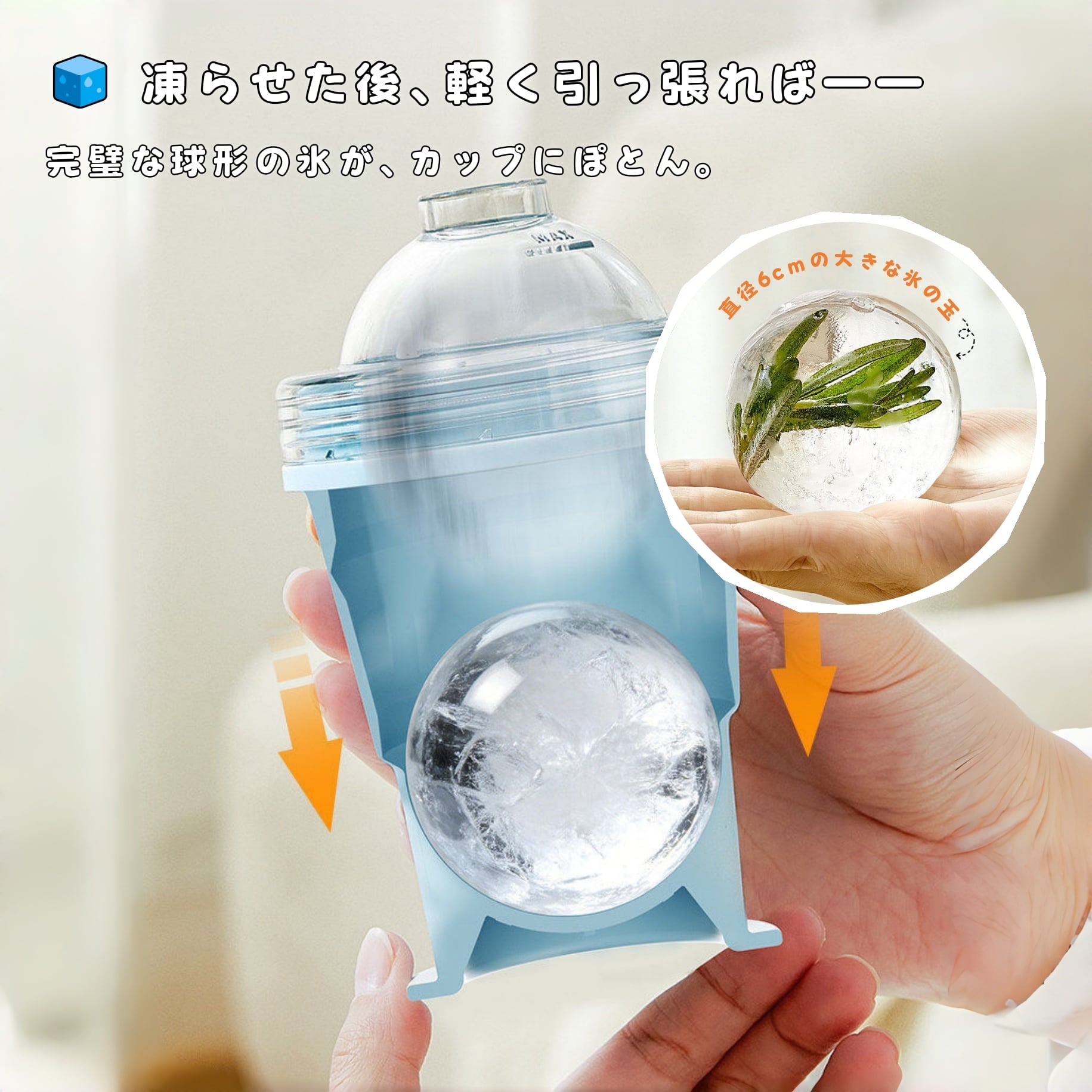 ソフトシリコン製だから、力いらず。丸い氷球がグラスにぽとん——見た目も涼しげで、ドリンクがより美味しく。