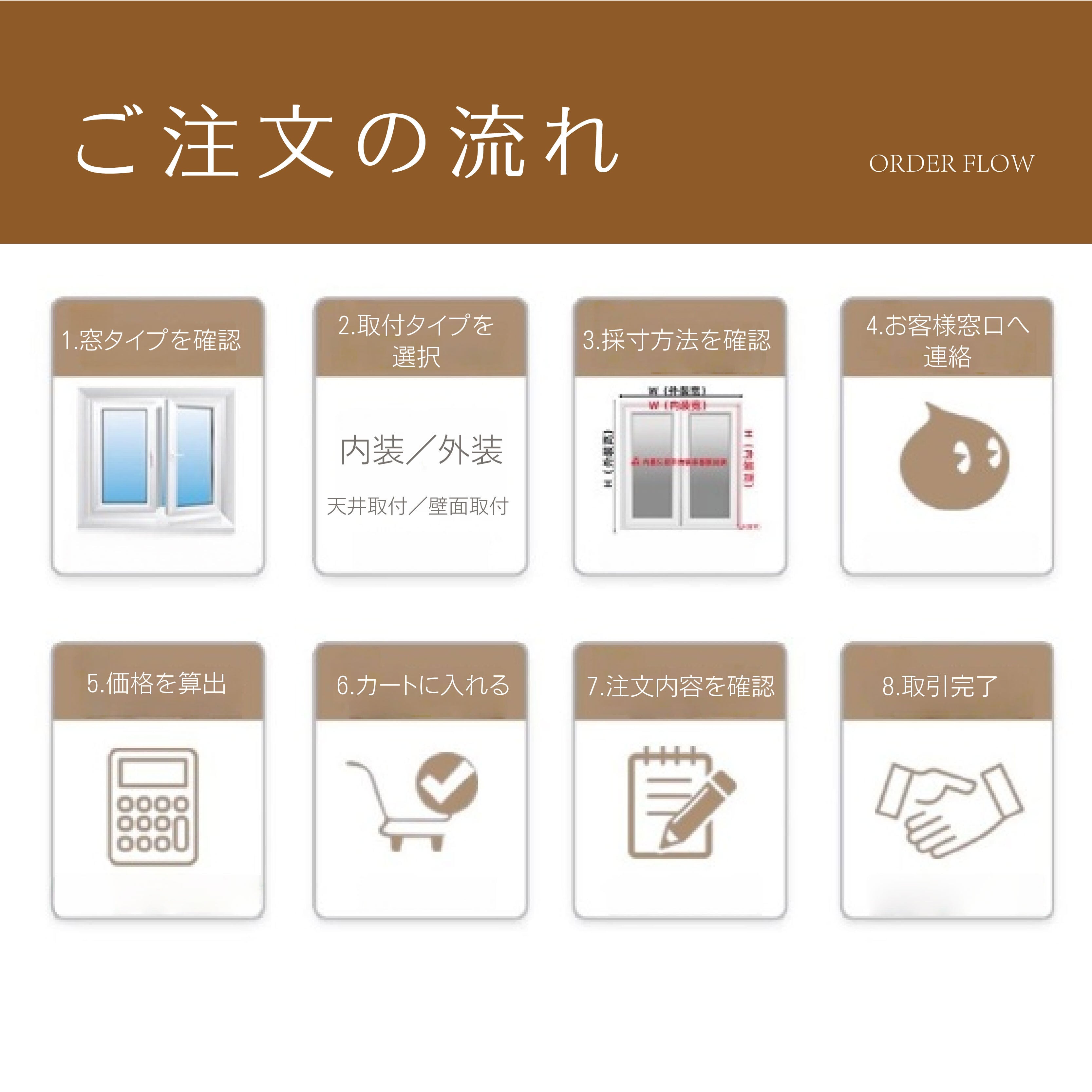 • サイズのご連絡: ご注文確定後、以下のいずれかの方法で、最終的なご希望サイズ(窓枠内の幅 / 高さ / 枠の深さ)をお知らせください。