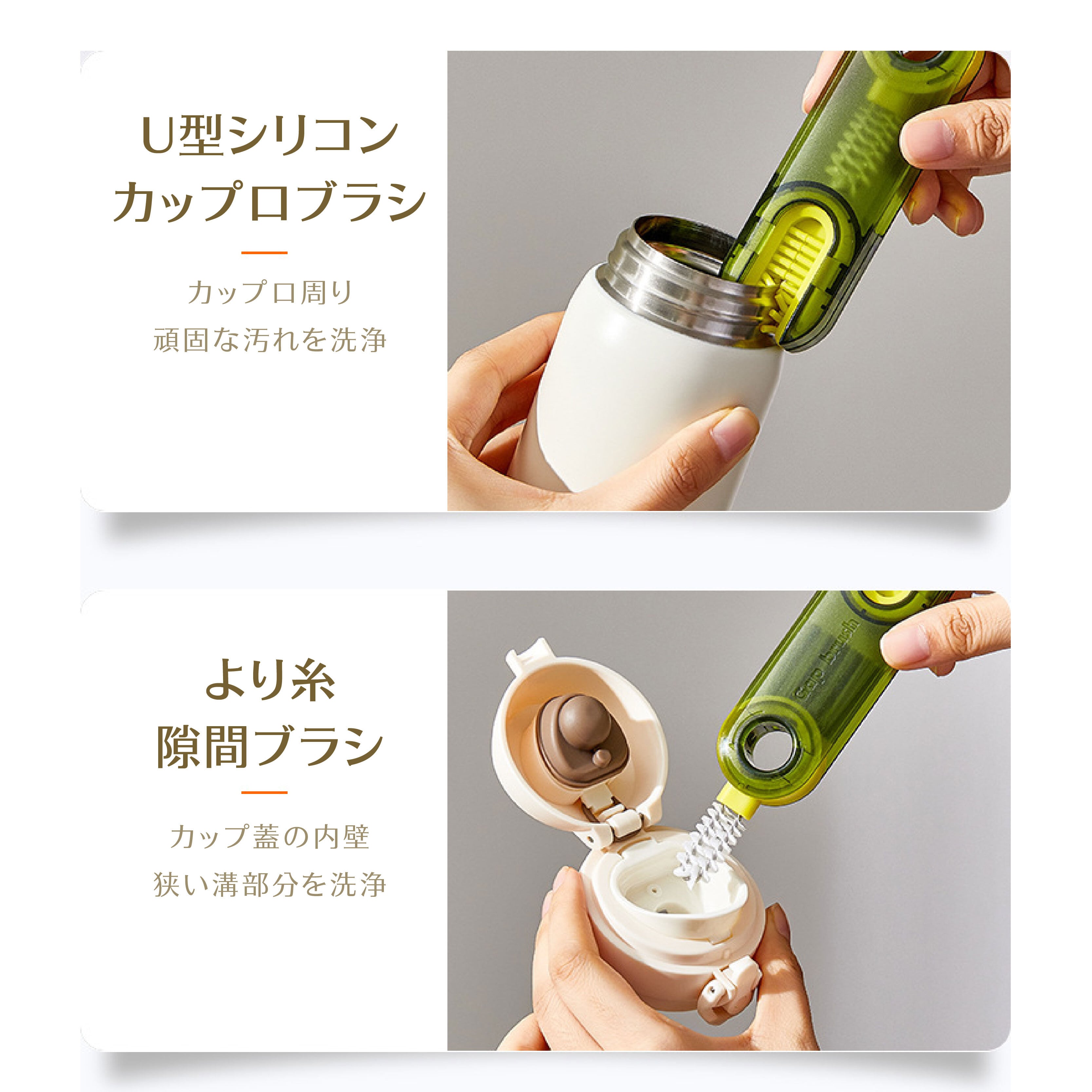 カップ口の隙間、蓋の内壁、容器の角や溝など、洗いにくい場所をピンポイントで洗浄。