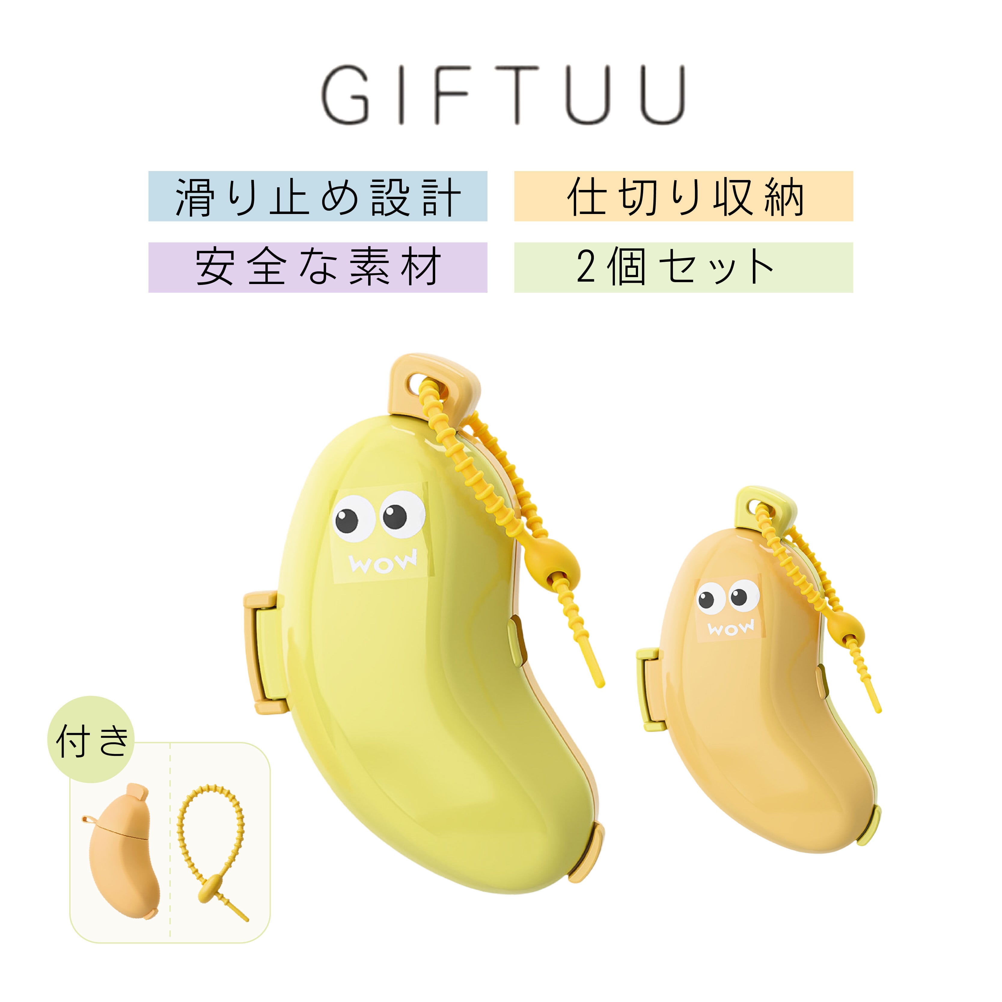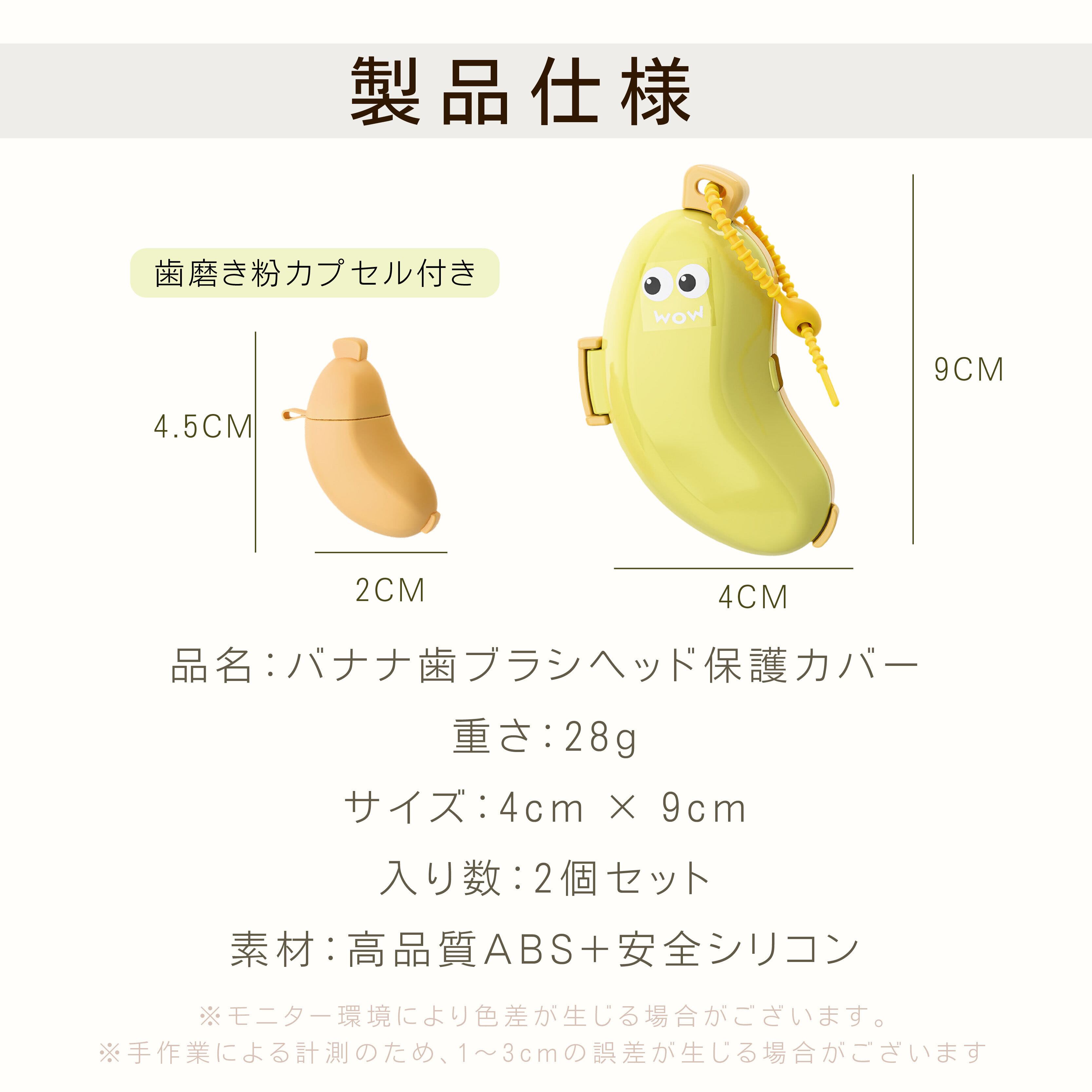 Y 101 .【2個セット】バナナ歯ブラシヘッド保護カバー 防菌・通気・防汚 滑り止め付き 電動・大人・子供用 仕切り収納 旅行便利 ABS+シリコン素材 歯磨き粉カプセル+シリコンストラップ付き