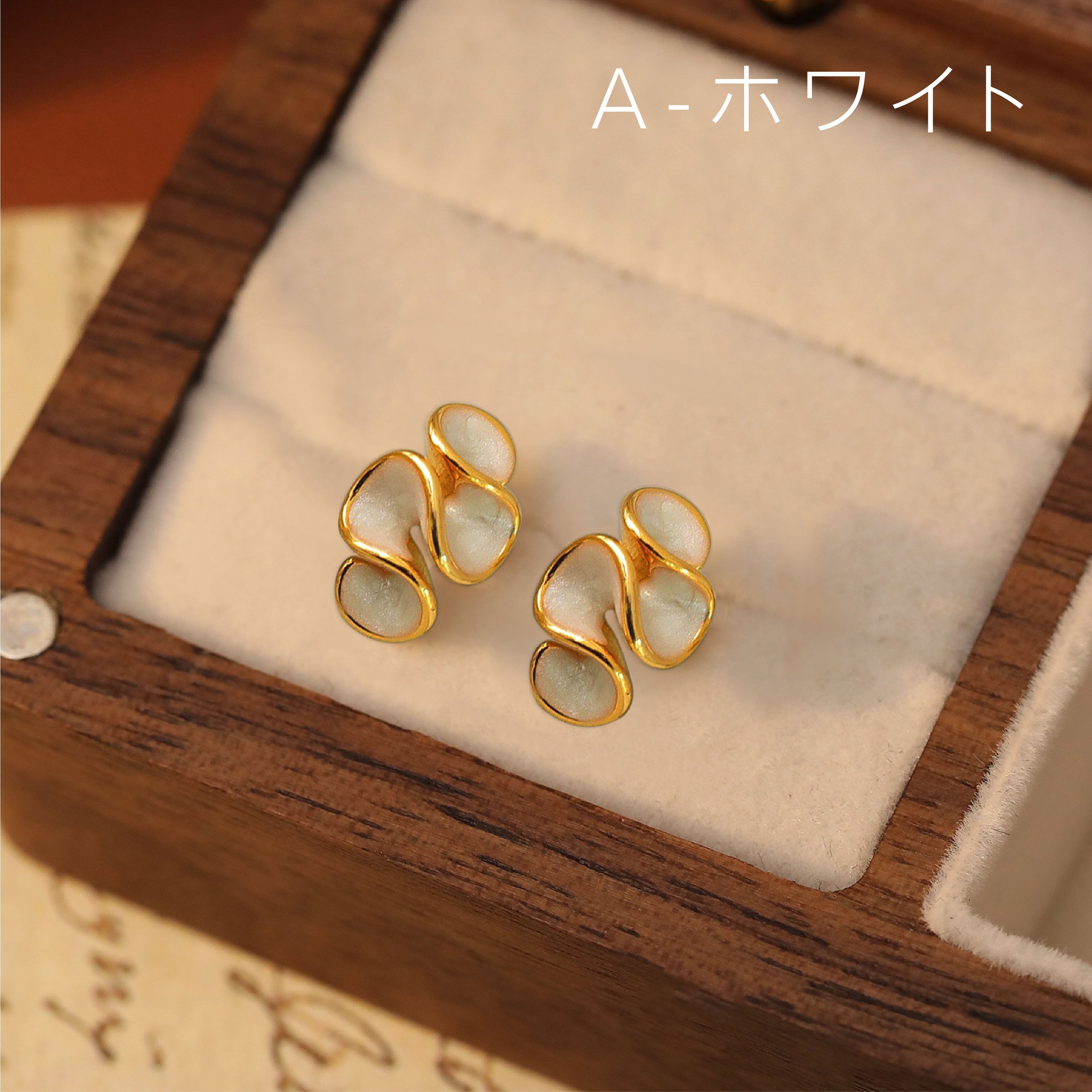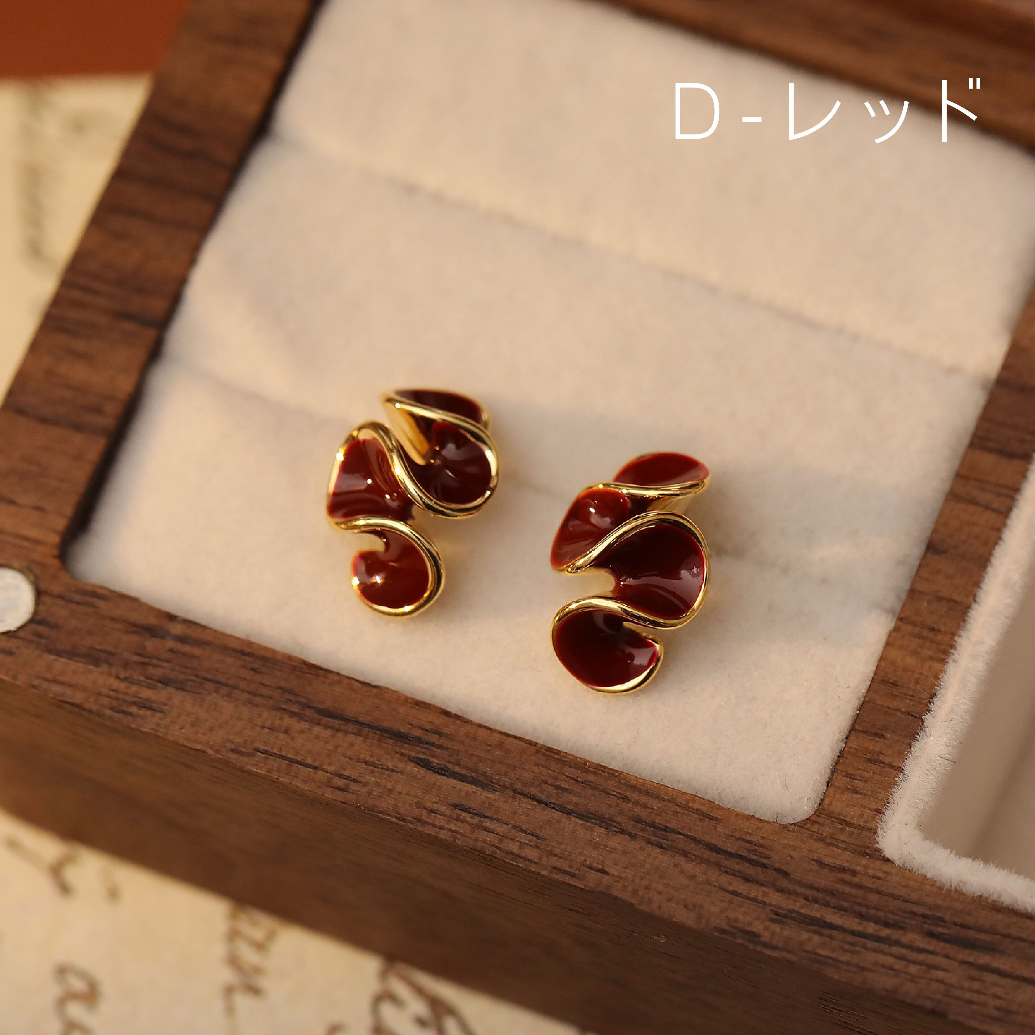 シワ加工メタル×エナメルフラワー イヤリング