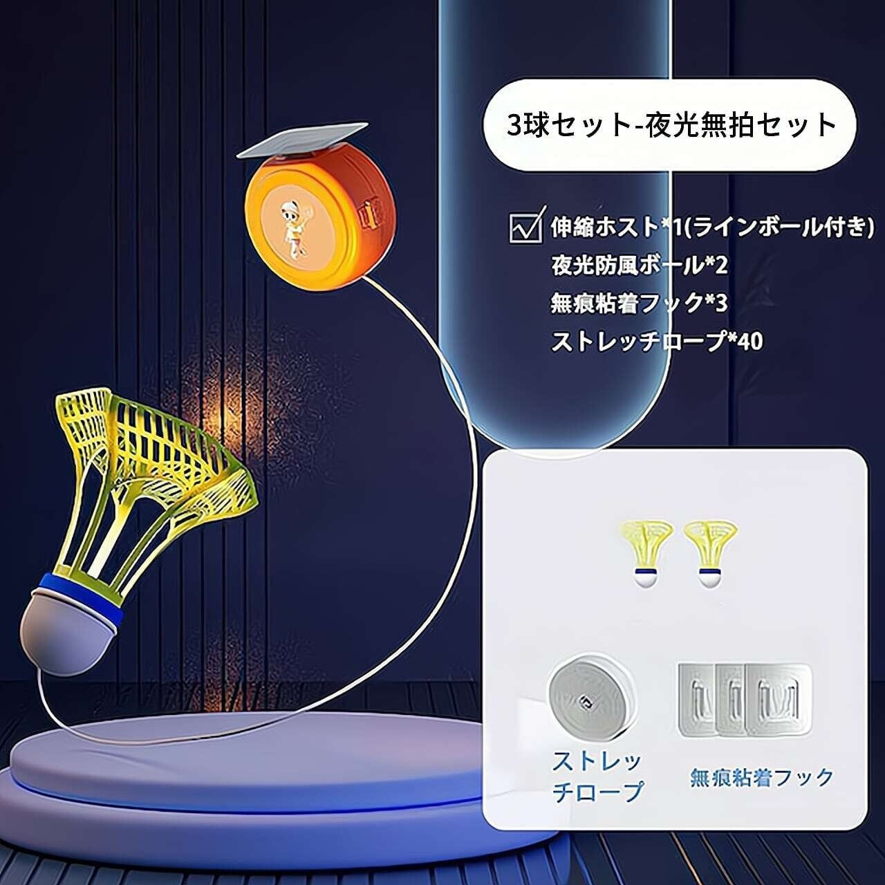 Y 125 . 2 バドミントン室内 一人 練習バドミントン 室内バドミントン自動リターン サスペンション 携帯便利 弾性 愛好者 初心者トレーニング用具 練習補助 バドミントン (1つの訓練器、3つのボール、3つのフック、40本のゴムひも)