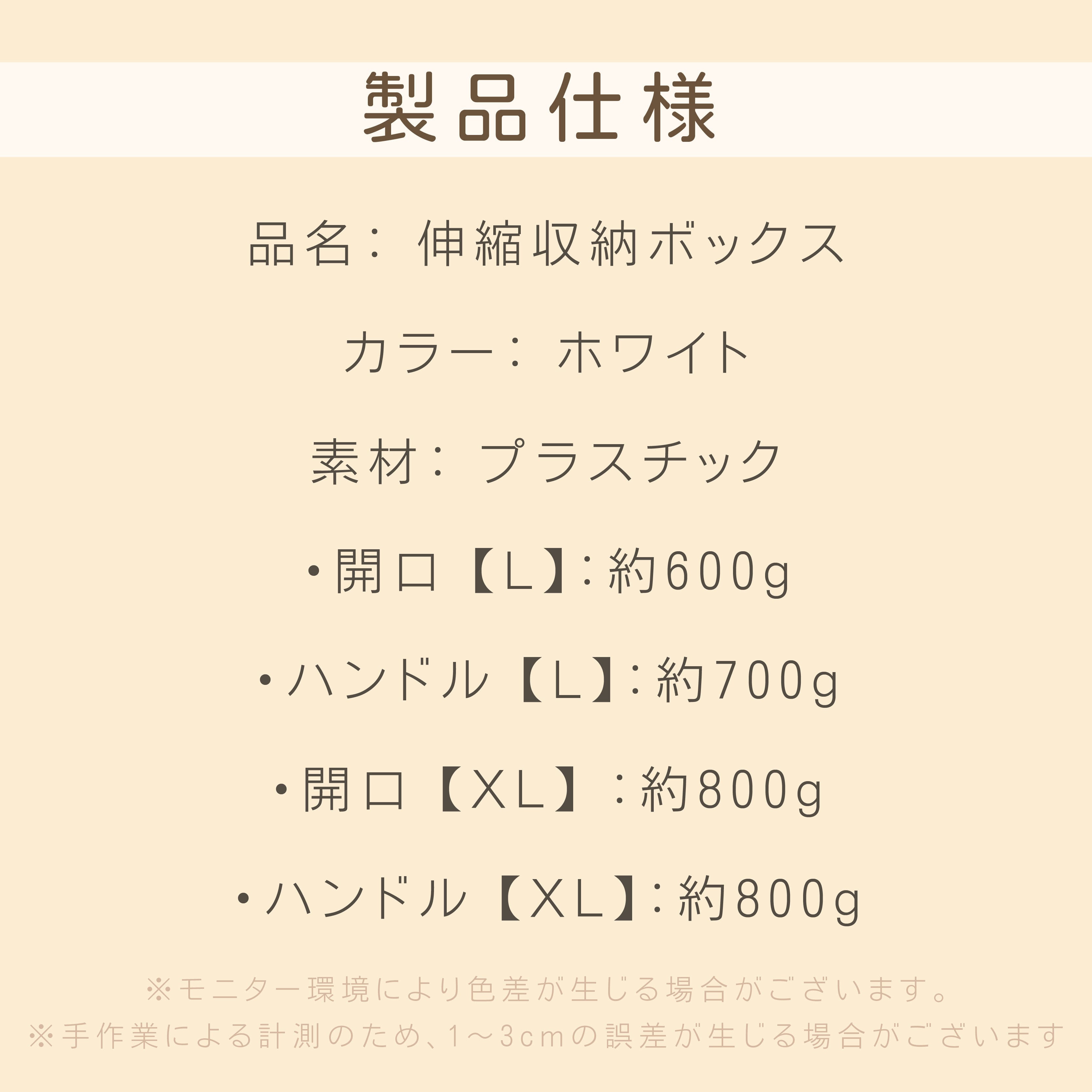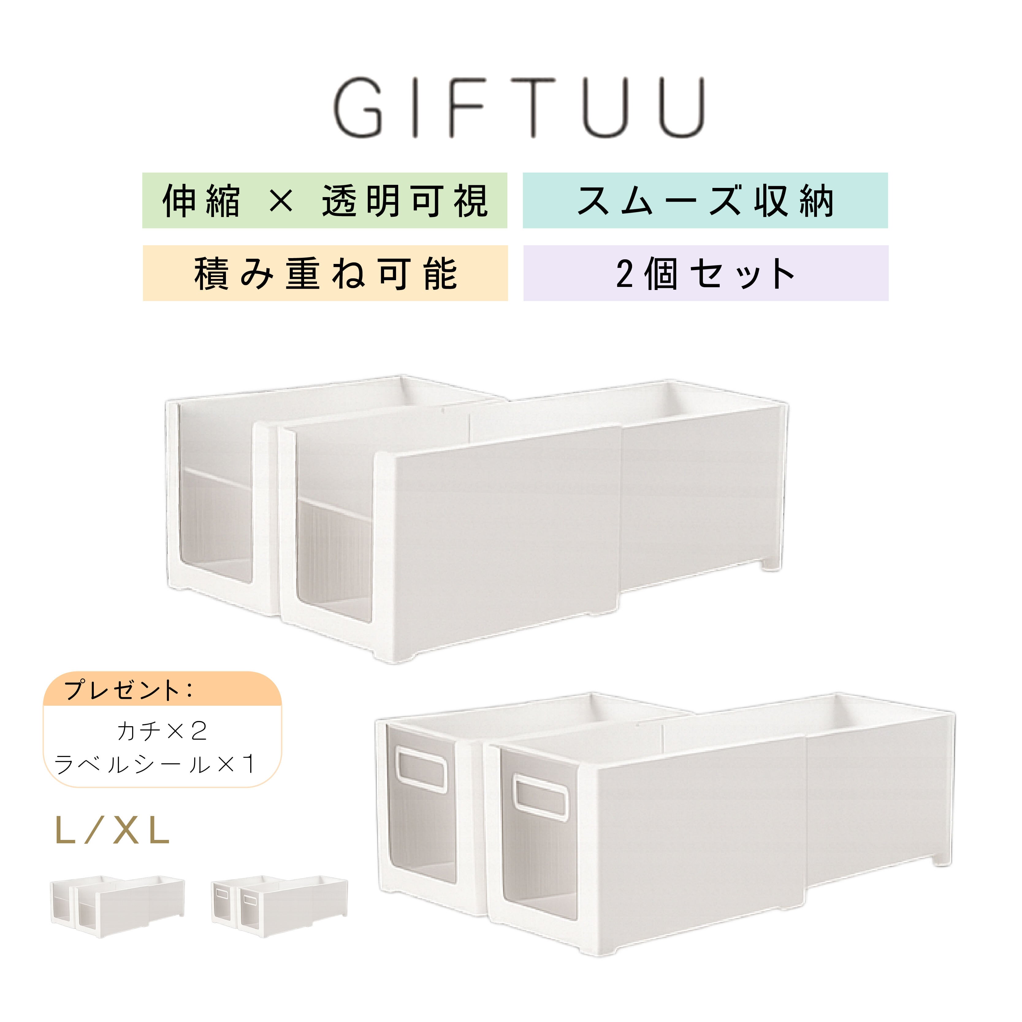 Y 126 . 【3個セット】伸縮収納ボックス L/XL 透明デザイン 引き出し整理 キッチン収納 プラスチック製 ホワイト Kクリップ3個・ラベルシール1枚付き