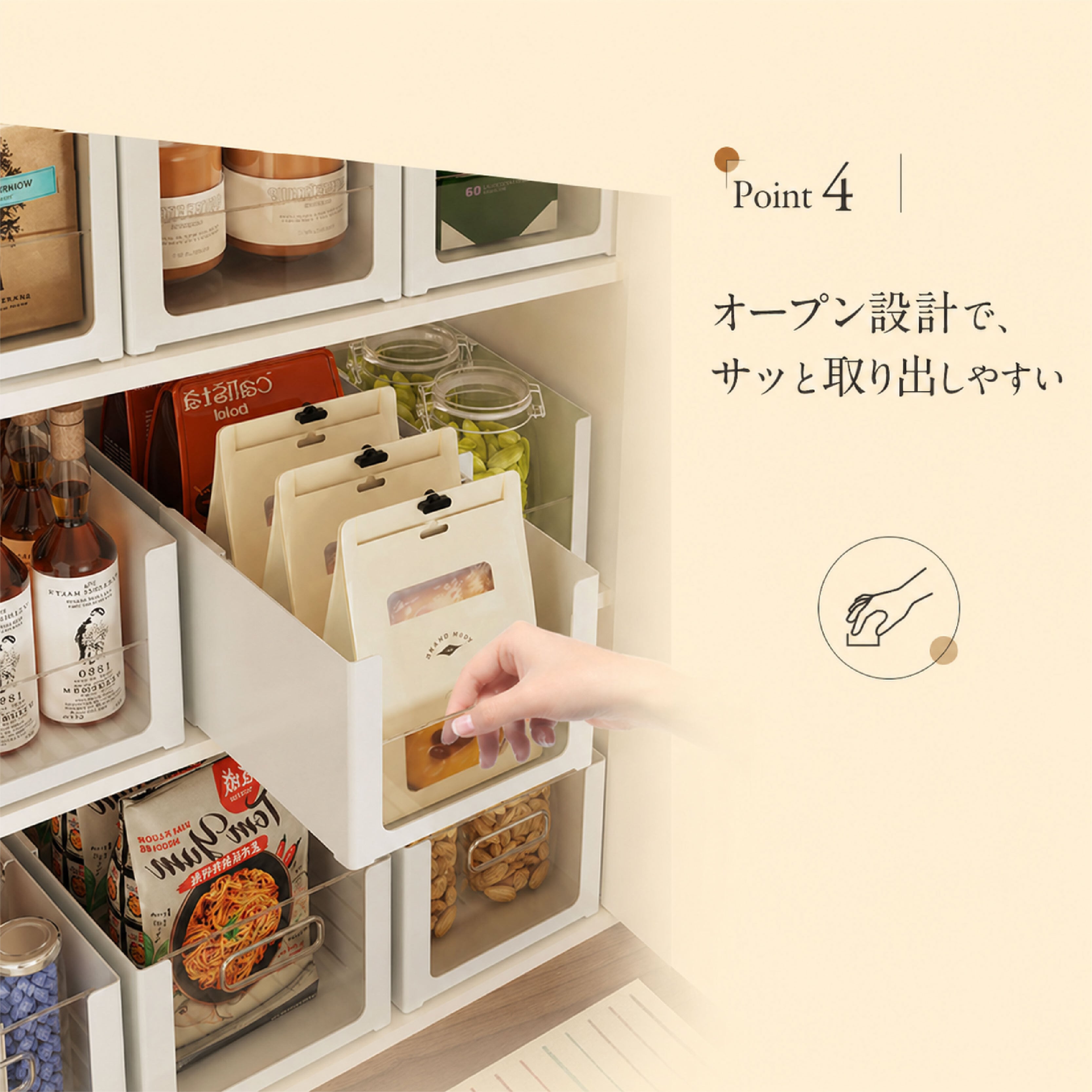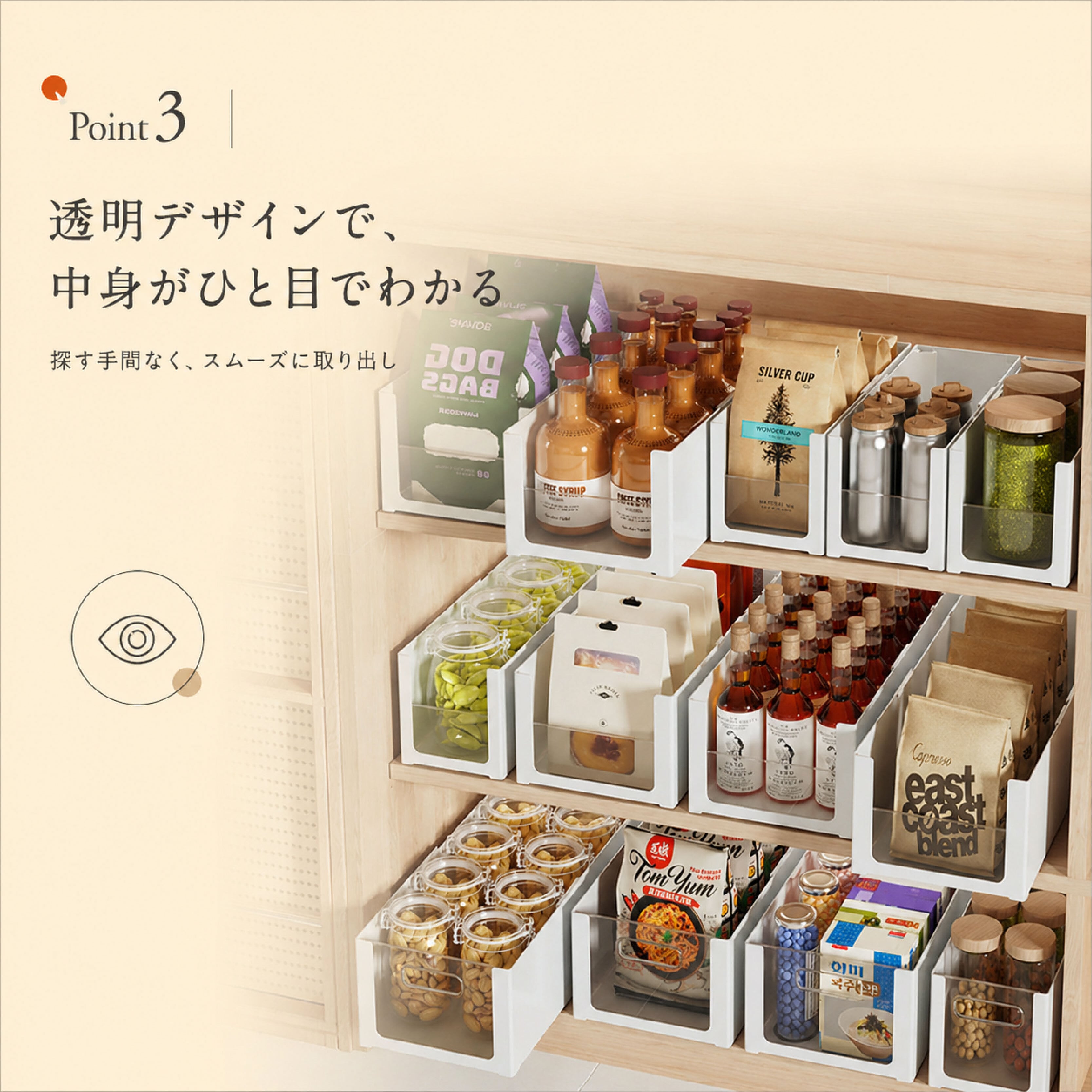 中身がひと目でわかり、探す手間が省けます。必要なものをスムーズに取り出せます。