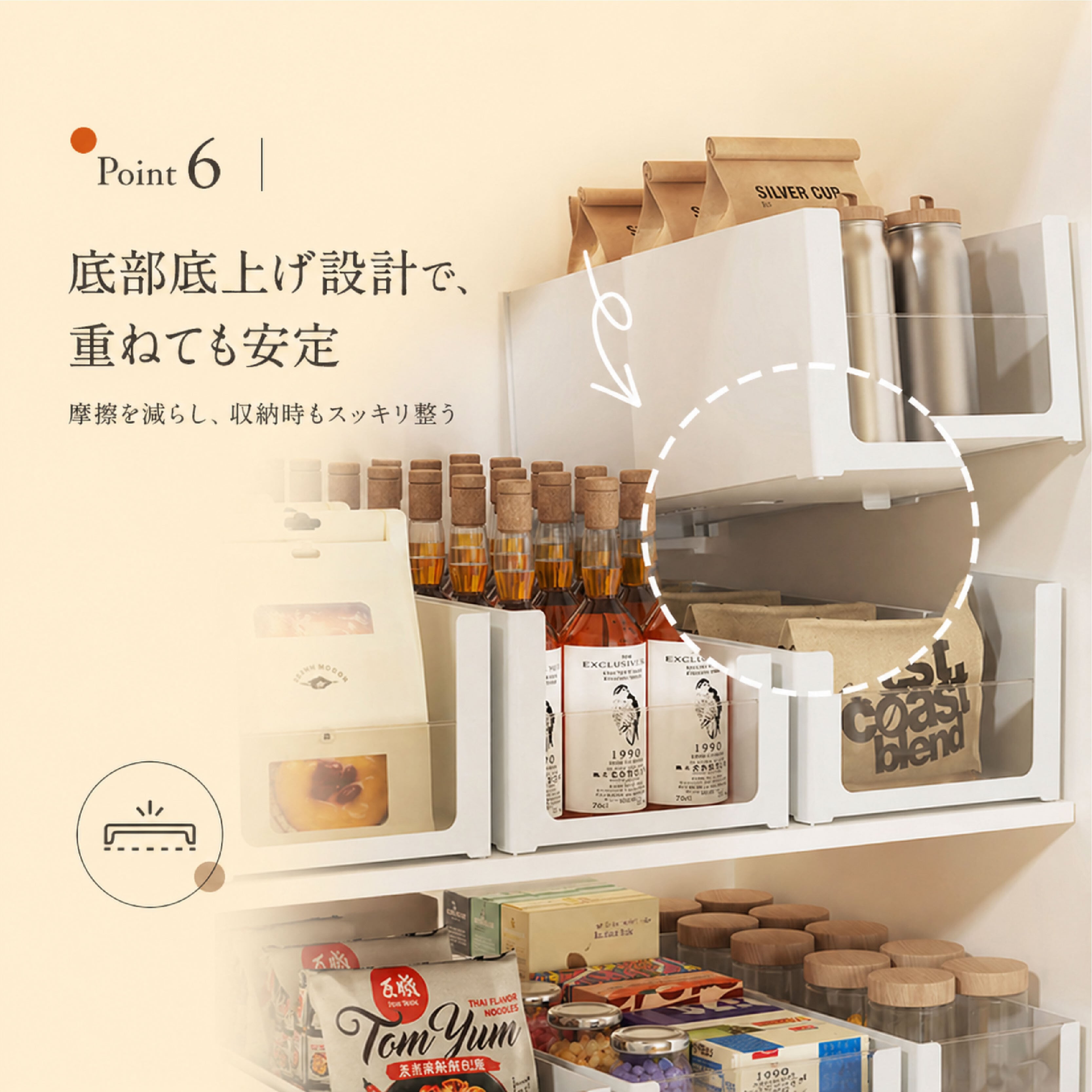 同じサイズのボックスを積み重ねて収納可能。スペースを有効活用できます。