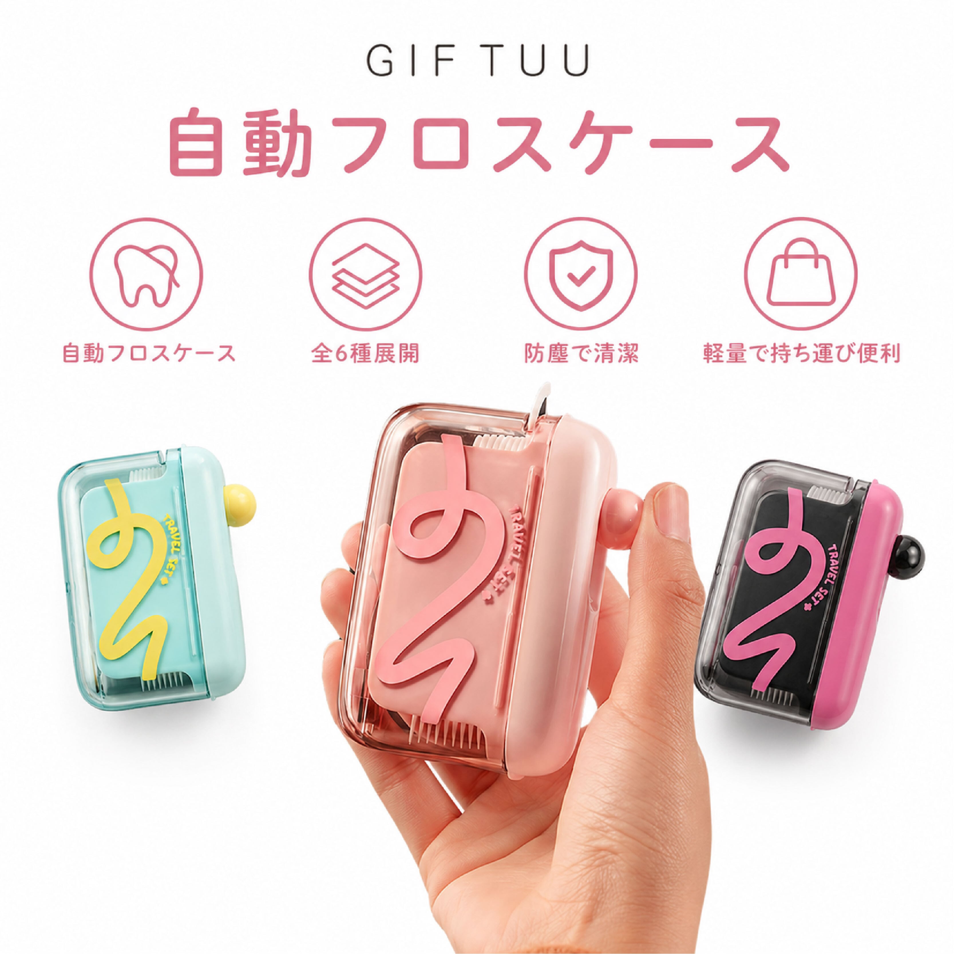 XQ 136 . 【全6種】自動フロスケース ワンタッチオープン 防塵 軽量 持ち運び便利 繰り返し補充可能 透明設計 ギフト プレゼント