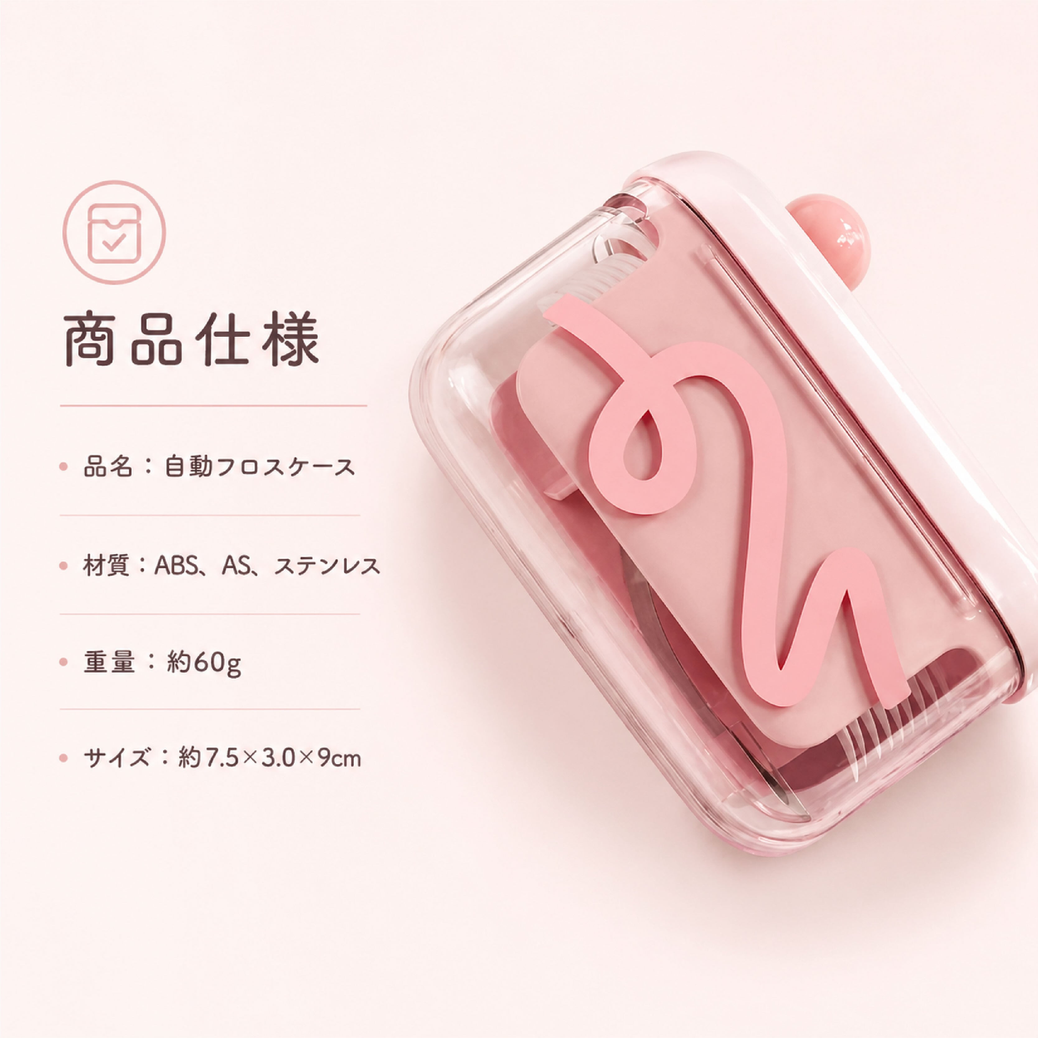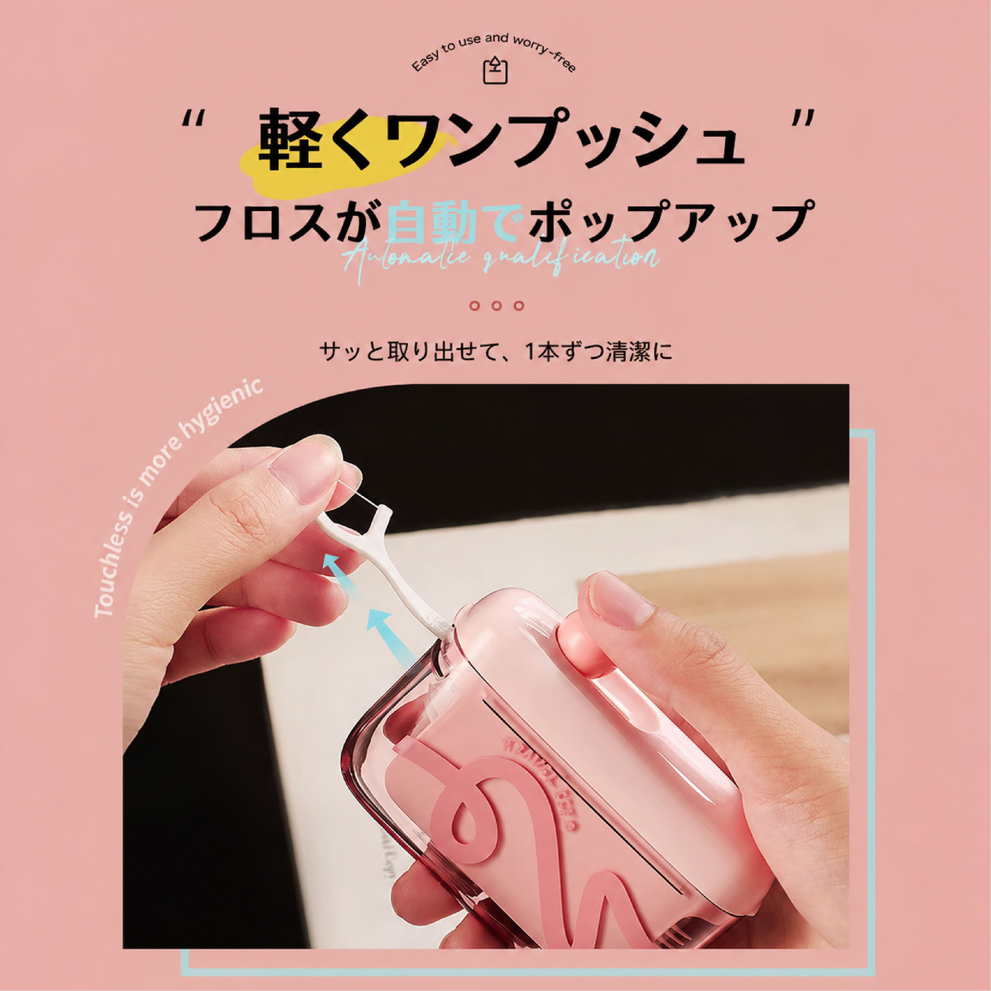 ワンタッチで自動オープン。軽く押すだけで、フロスがスッと出てくる自動フロスケースです。