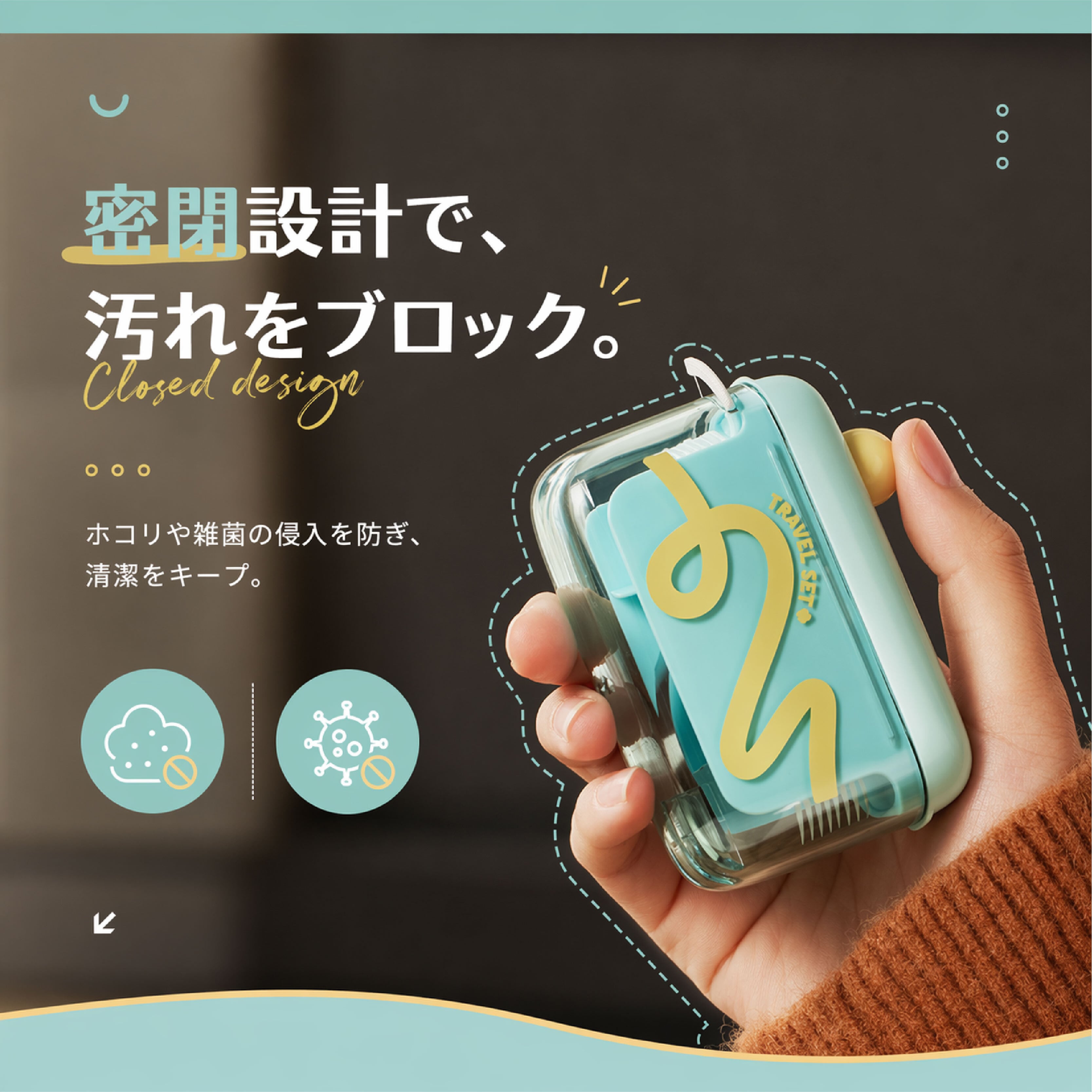 ホコリや雑菌の侵入を防ぎ、清潔な状態をキープ。大切な口腔ケアアイテムを清潔に保ちます。