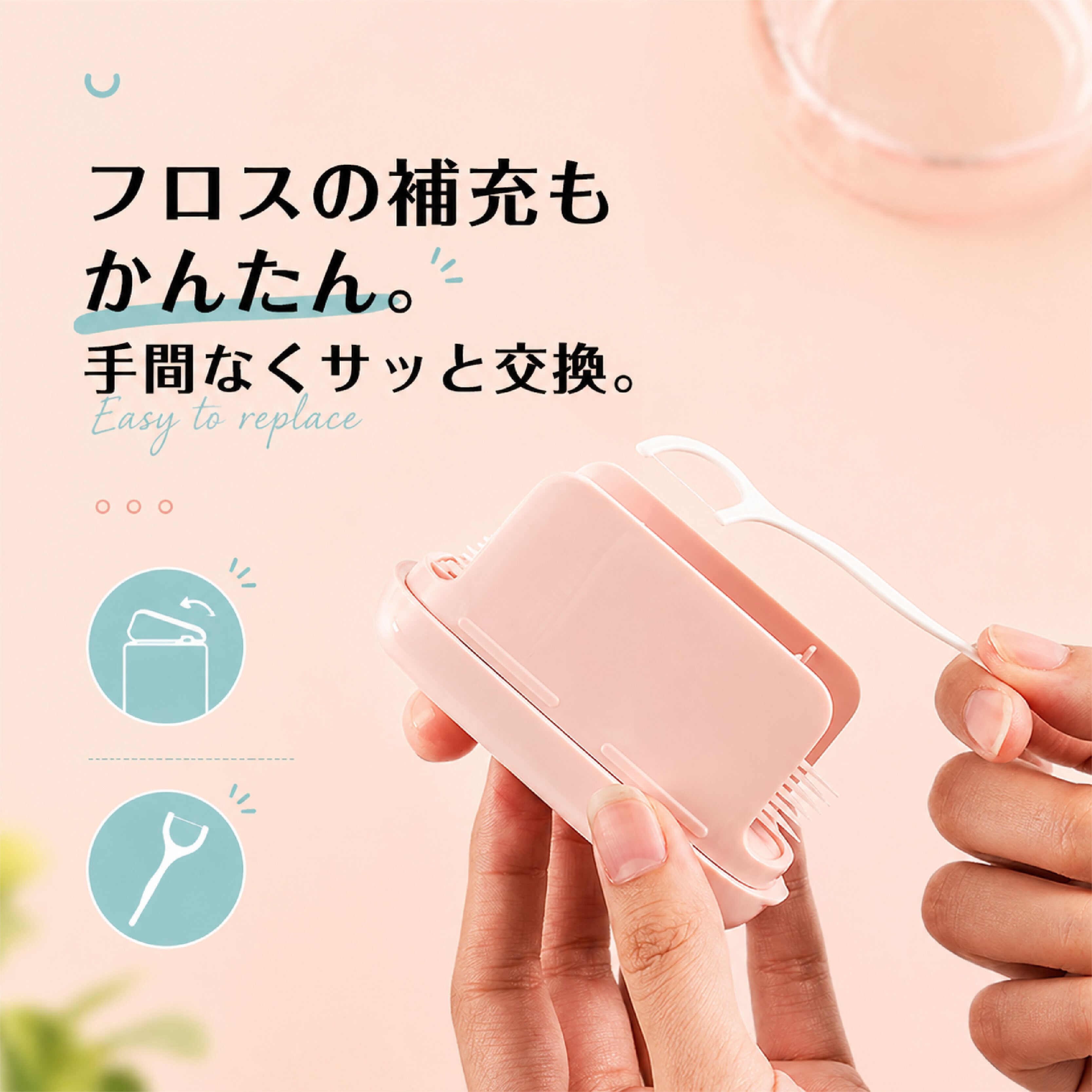 フロスがなくなっても、補充して繰り返し使えます。経済的で環境にも優しい設計です。